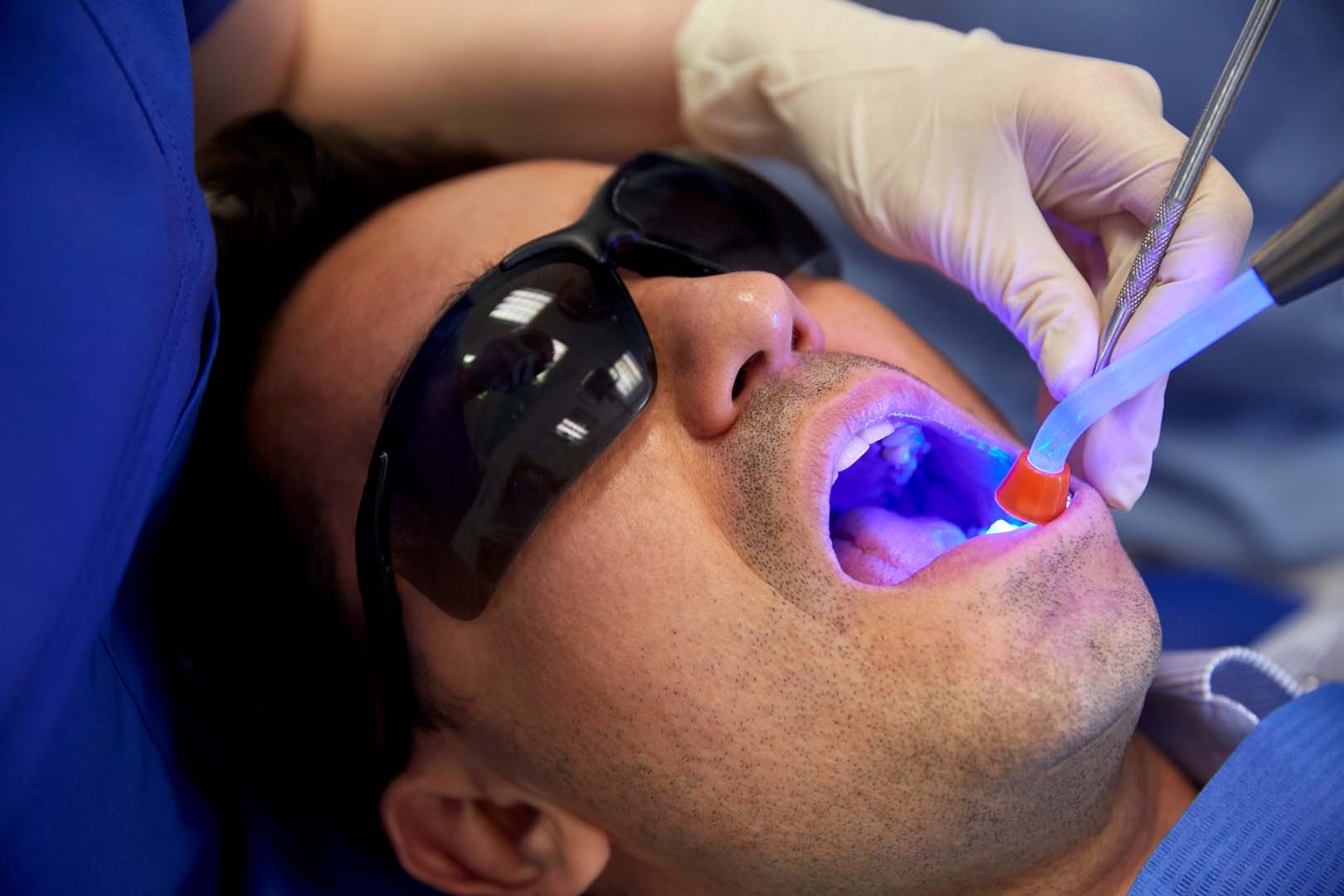 We first numb the area of the mouth needing the filling. The decay is removed from the tooth completely. The next step is to prep the tooth for the new composite filling. We do this by applying an etching gel into the small hole, washing it away and then packing the hole with resin. The resin is cured and hardened with a special dental light. We can place multiple fillings in the same area, and we recommend coming in for treatment as soon as it's found that you have a cavity.